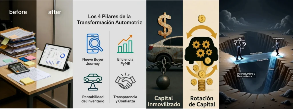 Lo vimos claro. El cliente investiga en una pantalla (Pilar 1). La eficiencia de tu PyME depende de la automatización (Pilar 2). Tu rentabilidad depende de una gestión de inventario inteligente (Pilar 3). Y la confianza de tu cliente se gana con transparencia digital (Pilar 4).